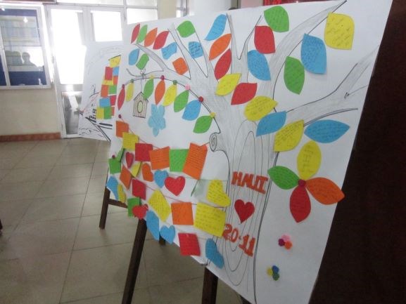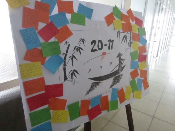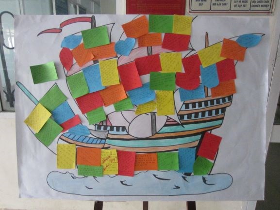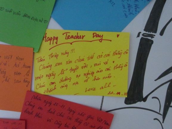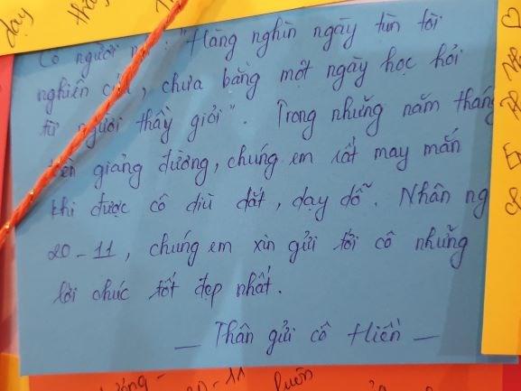 Tấm thiệp lớn ghi đầy những lời chúc của sinh viên gửi đến các thầy cô giáo