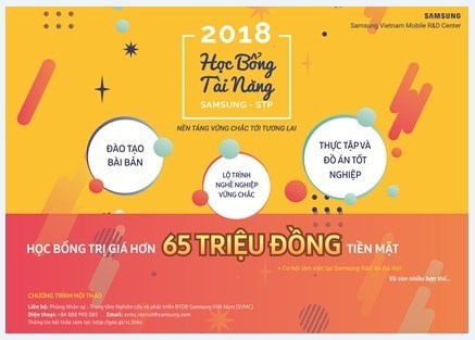 HỌC BỔNG TÀI NĂNG SAMSUNG (SAMSUNG TALENT PROGRAM – STP) nằm trong khuôn khổ chương trình hợp tác giữa SAMSUNG và các trường Đại học lớn miền Bắc nhằm thúc đẩy tạo nên nền tảng tri thức và kỹ năng vững chắc cho các Kỹ sư/ Cử nhân tương lai trên con đường đi đến thành công.