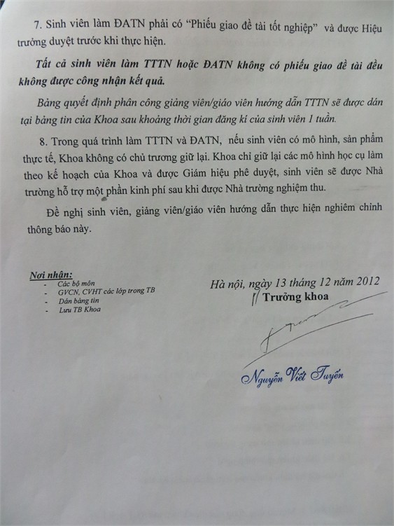 Thông báo về việc lấy ý kiến chương trình đào tạo Điện tử Viễn Thông