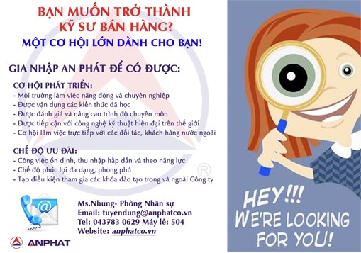 Công ty TNHH thiết bị phụ tùng An Phát thông báo tuyển dụng các sinh viên đã tốt nghiệp và các sinh viên đang học năm thứ 4 chuẩn bị ra trường ngành Điện tử, Công nghệ Ô tô, Cơ khí, Điện,...